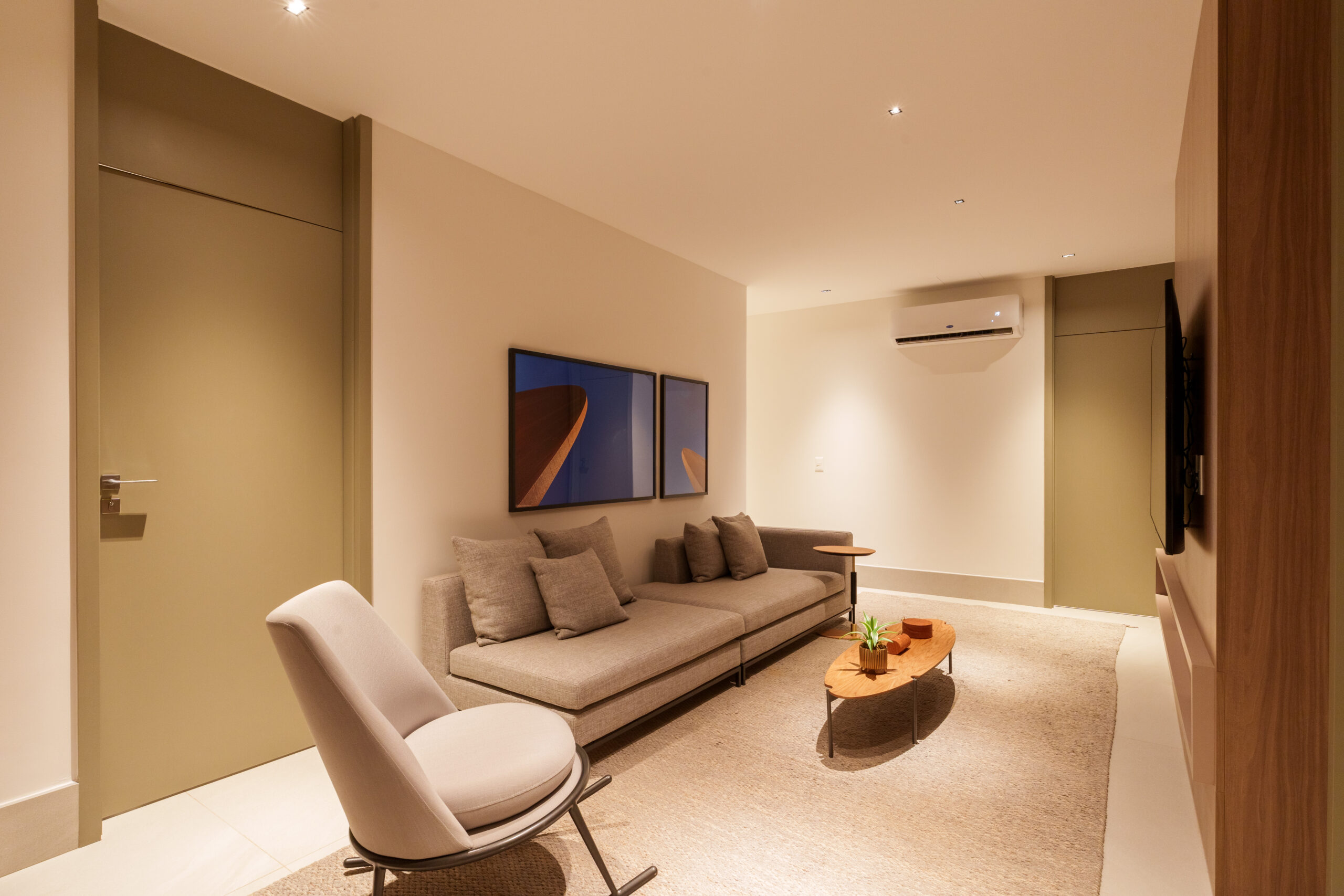 O projeto legal do empreendimento encontra-se aprovado junto à SEGETH Central de Aprovação de Projetos GDF e a incorporação registrada sob o número R.7/131.585 no Cartório de 2° Ofício de Registro de Imóveis do DF. Os acabamentos das unidades e equipamentos das áreas comuns serão entregues conforme memorial descritivo, não limitado, mas considerando que os acabamentos, móveis, equipamentos e demais objetos de decoração poderão variar quanto a modelos, cores, texturas, reflexos naturais e quantidade, contudo, respeitarão o padrão de qualidade previsto. As imagens, ilustrações, artes, perspectivas, plantas humanizadas e maquetes apresentadas em estandes de venda e/ou materiais publicitários são meramente ilustrativas, podendo apresentar variação ao tempo de finalização do empreendimento em função do desenvolvimento dos projetos executivos, da necessidade de adequabilidade técnica ou do atendimento a postulados legais. A vegetação exposta nas perspectivas é meramente ilustrativa e representa o porte adulto das espécies. Na entrega do empreendimento, essa vegetação poderá apresentar diferença de porte, porém estará de acordo com o projeto e paisagismo. As vistas apresentadas são meramente ilustrativas e não representam a vista real do empreendimento.